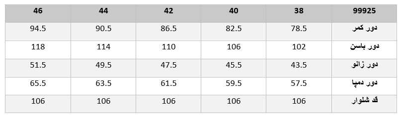 اندازه ها بر اساس CM میباشند و اندازه ها ممکن است 0.5 الی 1 CM متفاوت باشد.