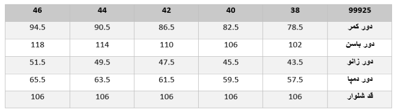 اندازه ها بر اساس CM میباشند و اندازه ها ممکن است 0.5 الی 1 CM متفاوت باشد.