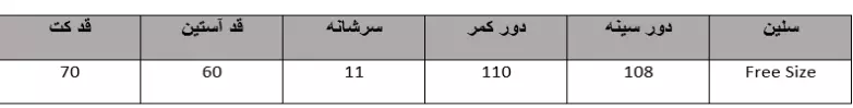 جدول سایز: